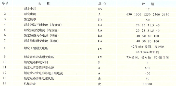 真空斷路器主要技術(shù)參數(shù)